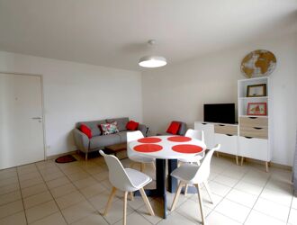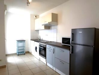 Close to all amenities, Beautiful furnished T2 of 42m², located on the ground floor of a quiet residence comprising entrance hall with cupboards, living room with US kitchen area, bedroom with cupboards, bathroom, wc and balcony. This property has a secure parking space. Free on July 03, 2024. Rent: 620? CC Security deposit: 1080n?